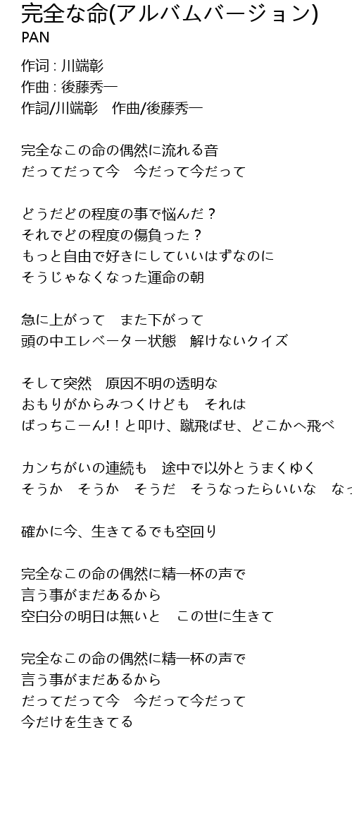 | 完全なこの命の偶然に精一杯の声で | |