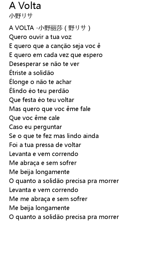 | [00:00.00] | A VOLTA xiǎo yě lì shā yě |