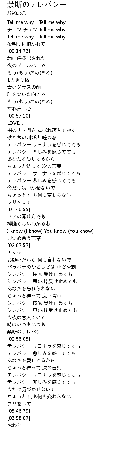 | [02:52.54] | 禁断のテレパシー |
