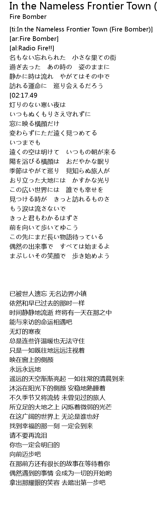 | [ti:In the Nameless Frontier Town (Fire Bomber)] | |