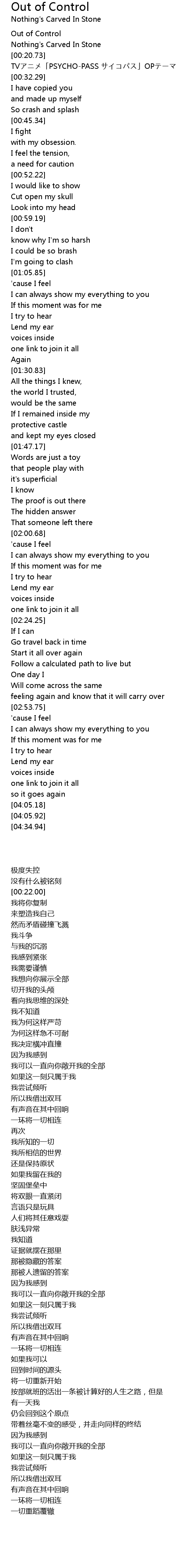 | [00:22.00] | TVアニメ「PSYCHO-PASS サイコパス」OPテーマ |
