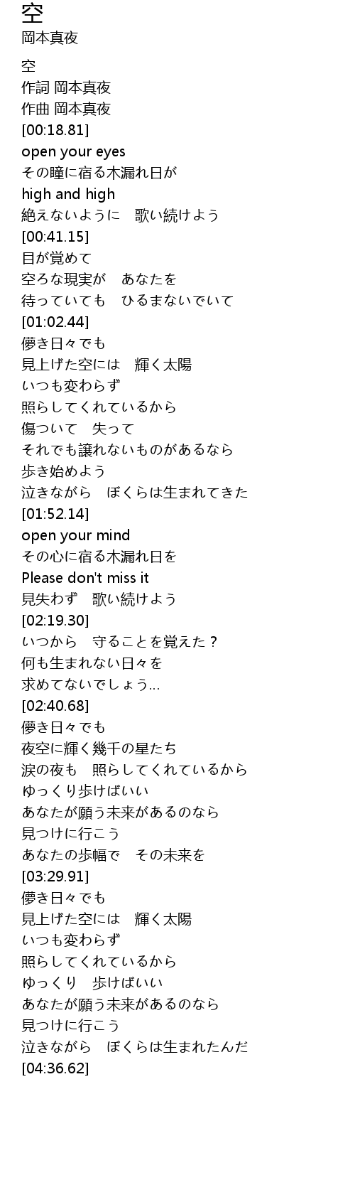 | [04:28.01] | 泣きながら ぼくらは生まれたんだ |