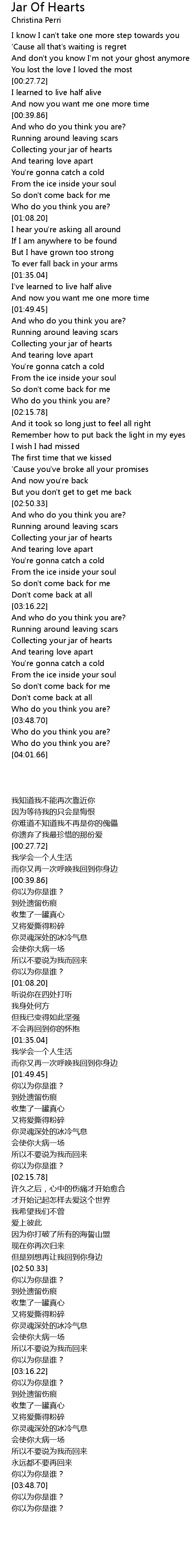 Collecting your jar of hearts |