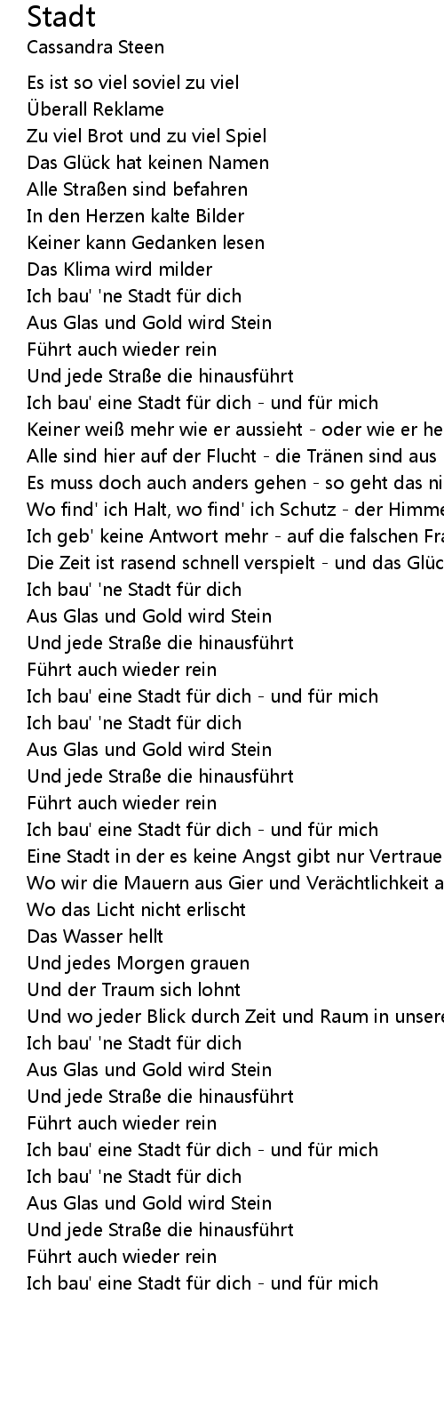 | [02:38.350] | Ich bau' eine Stadt für dich - und für mich |