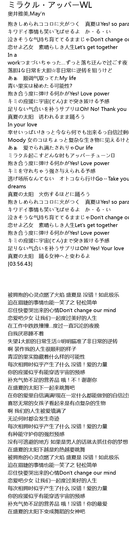 | [03:00.30] | 抱きしめられココロに火がつく 真夏はYes! so paradise |