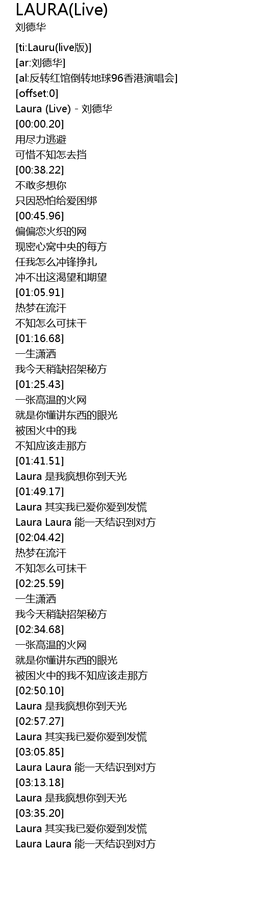 | [00:00.10] | Laura (Live) - 刘德华 |