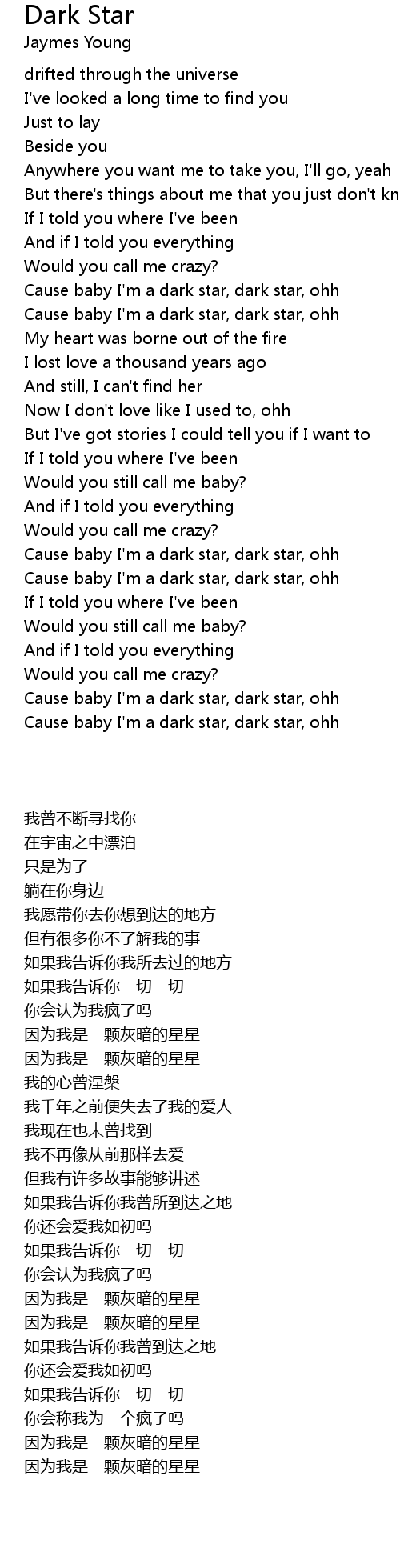 Cause baby I'm a dark star, dark star, ohh |