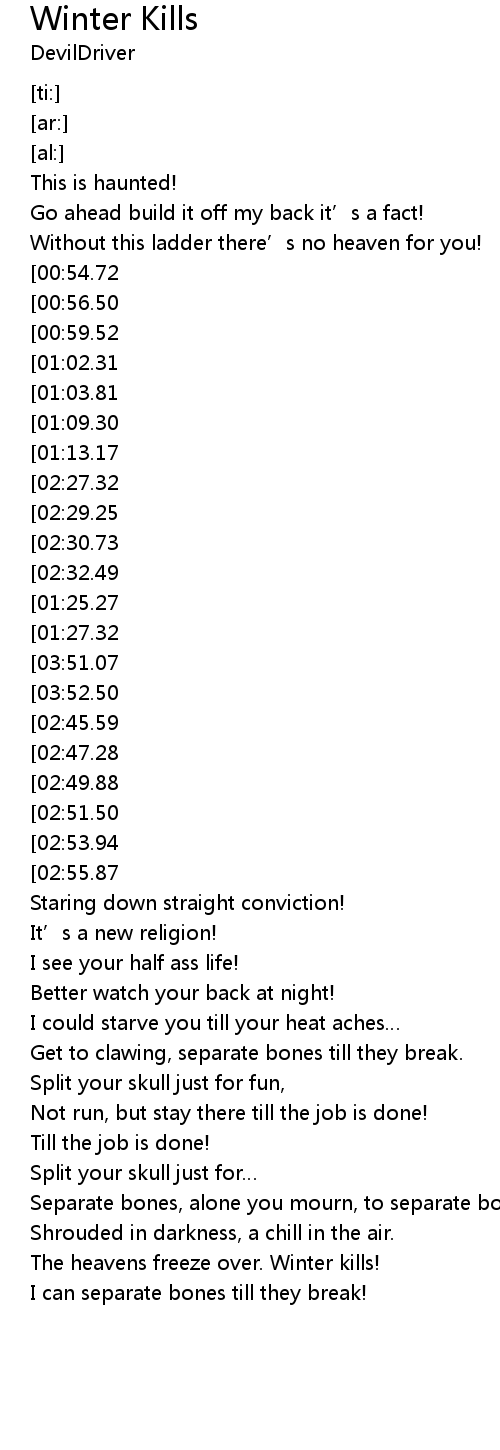 | [04:04.07][02:55.87][01:45.77] | So now winter kills! |