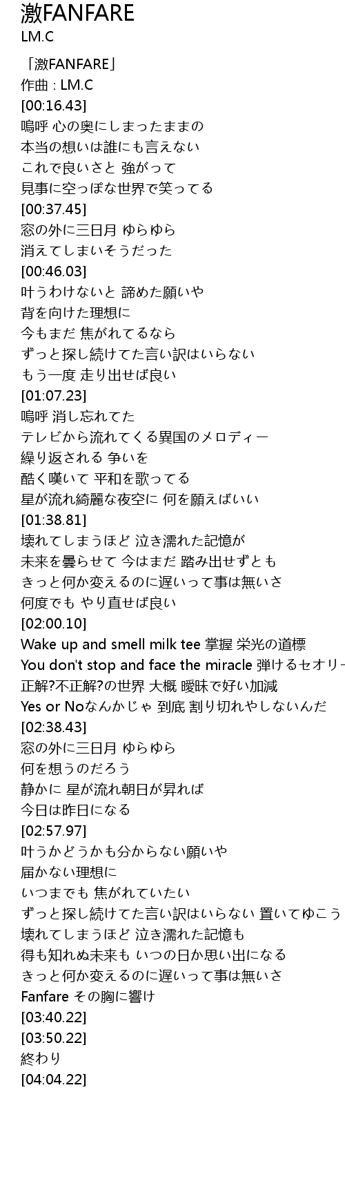 | [02:18.63] | Wake up and smell milk tee 掌握 栄光の道標 |