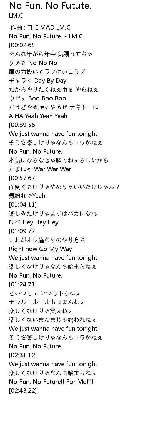 | [00:00.00] | No Fun, No Future. LM. C |
