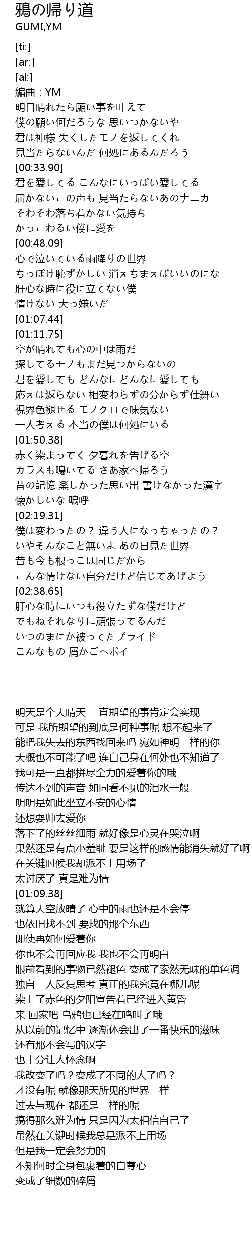 | [00:00.00] | 編曲:YM |