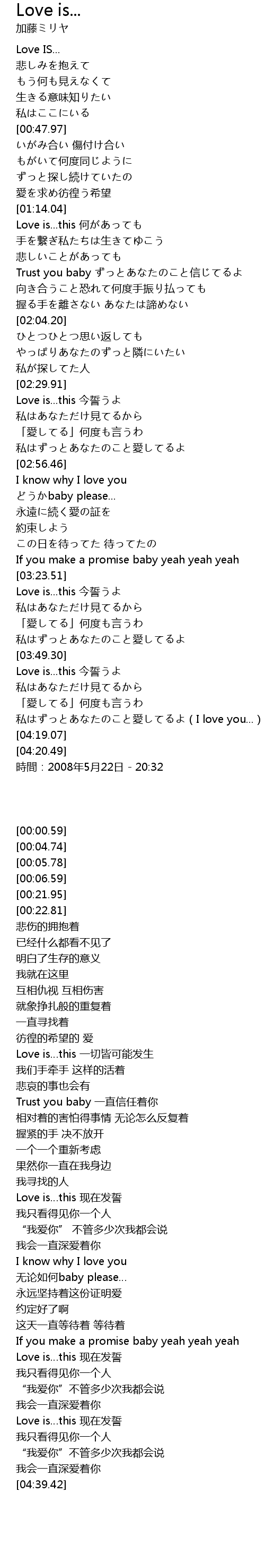 | [03:25.31] | Love is...this 今誓うよ |