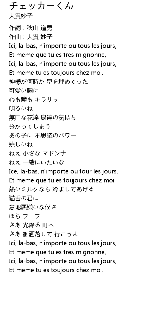 | [00:08.572] | Et meme que tu es tres mignonne, |