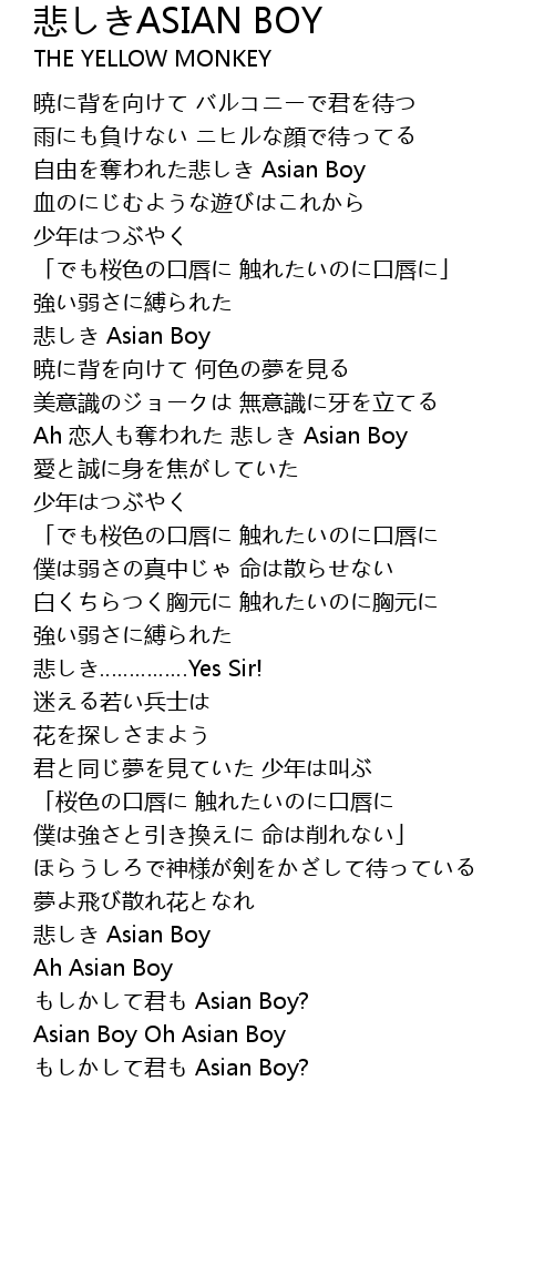 | Ah 恋人も奪われた 悲しき Asian Boy | |