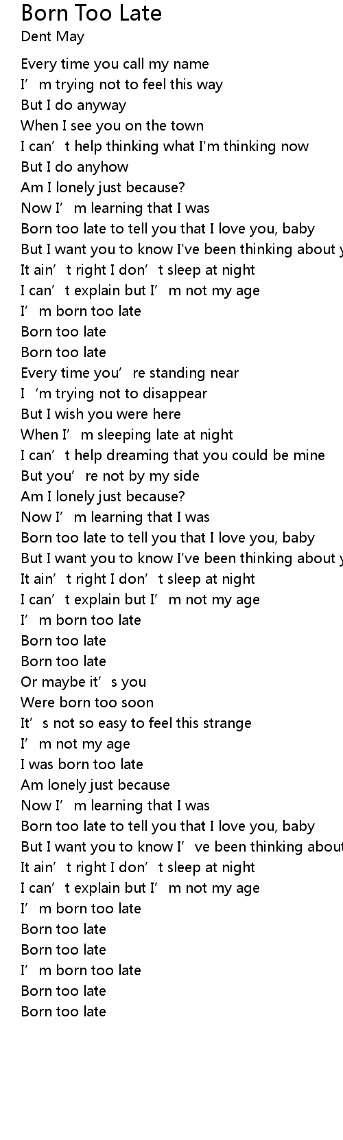 | Born too late to tell you that I love you, baby | |