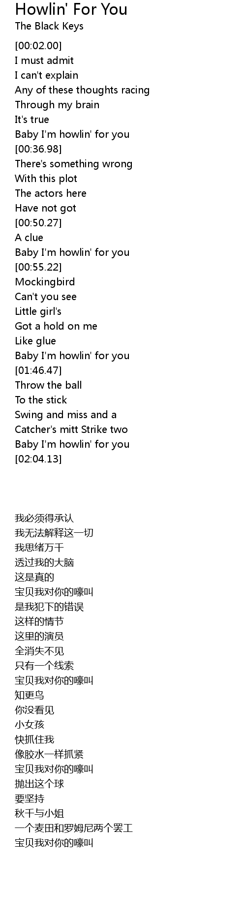 | [00:34.20] | Baby I'm howlin' for you |