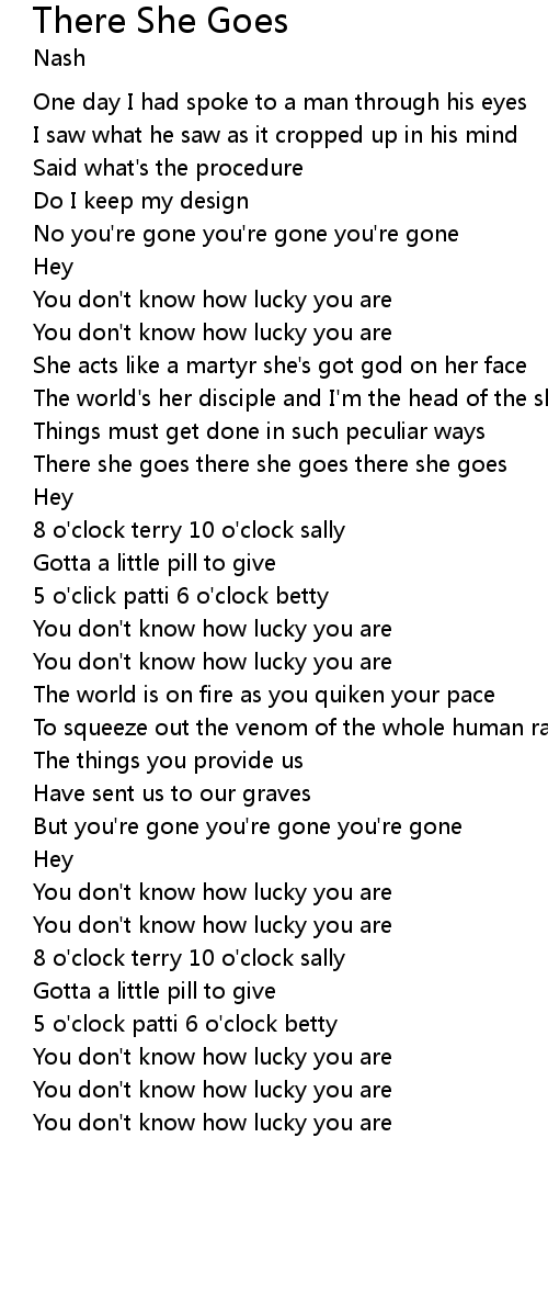 There she goes there she goes there she goes |
