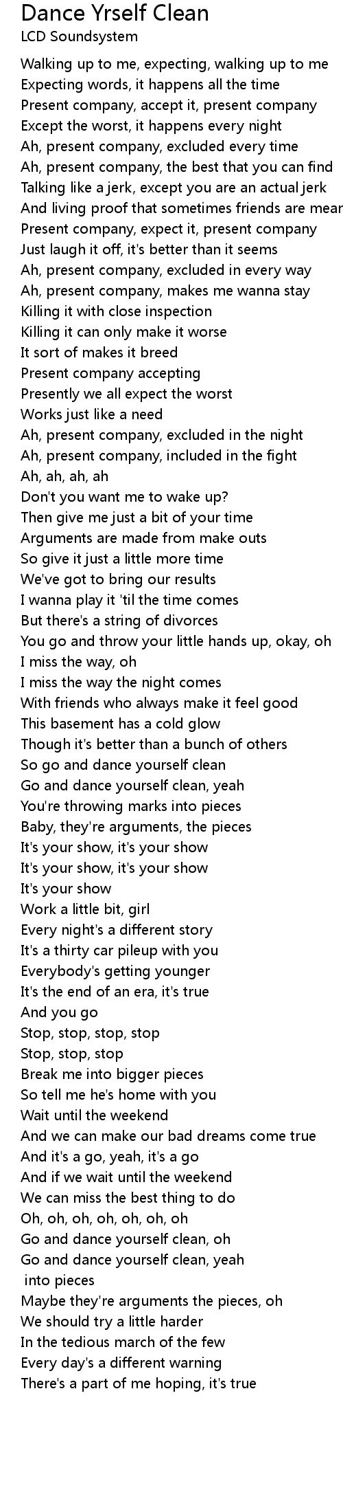 Song Dance Yrself Clean