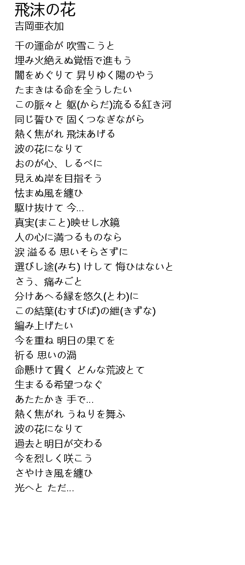 熱く焦がれ 飛沫あげる |