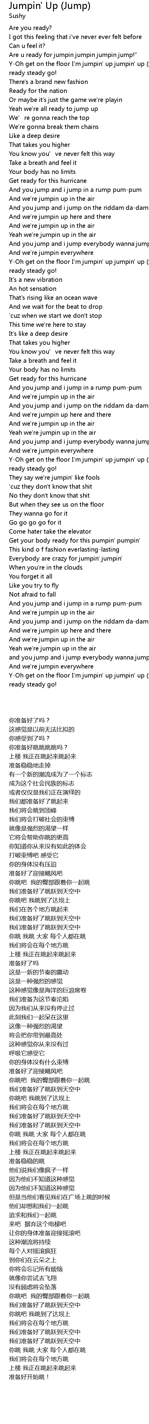 | [02:12.850] | Y-Oh get on the floor I'm jumpin' up jumpin' up (x4) |
