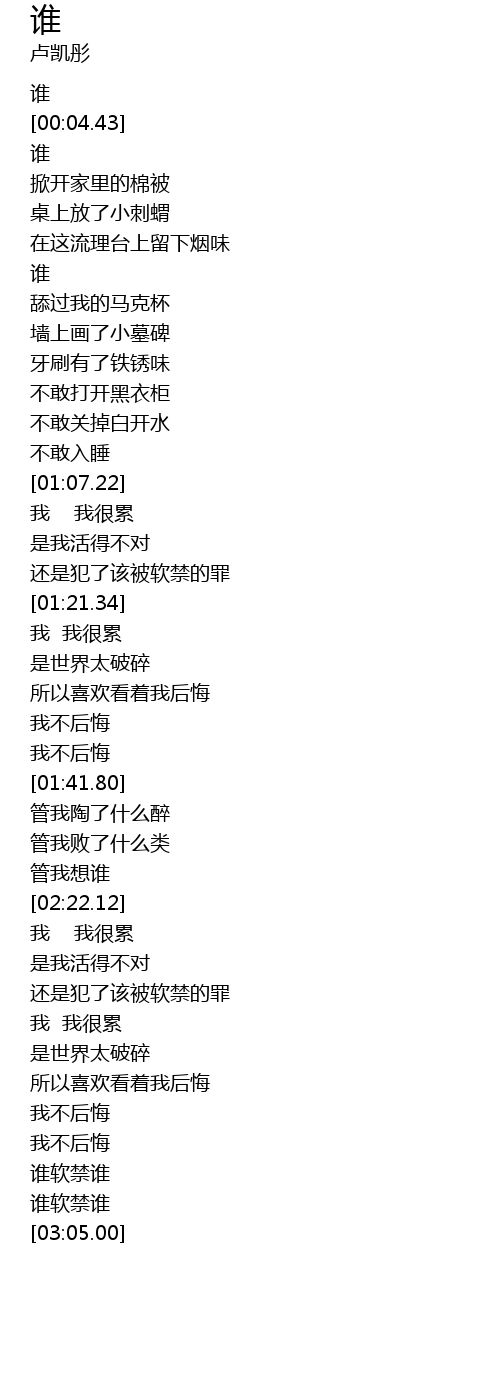 | [02:59.70] | shuí ruǎn jìn shuí |