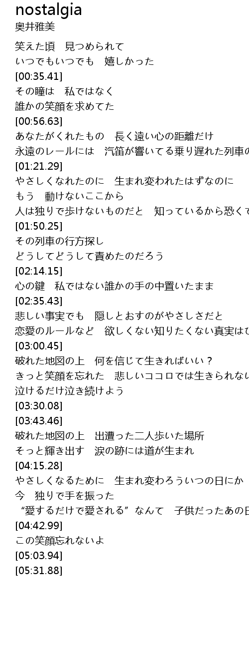 | [04:32.02] | “愛するだけで愛される”なんて 子供だったあの日々に… |