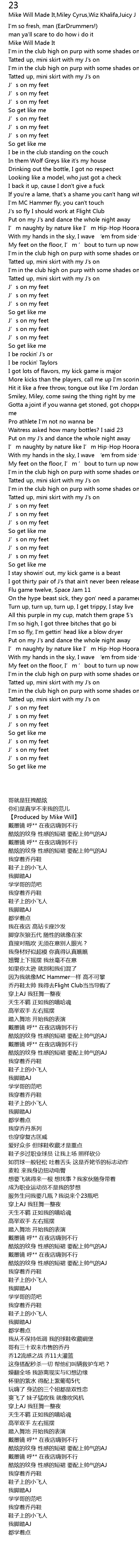 | [00:17.32] | Tatted up, mini skirt with my J' s on |
