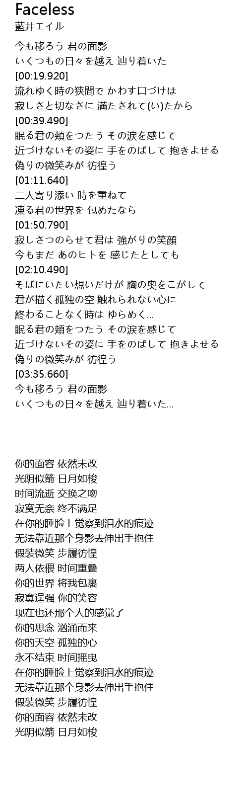 | [00:39.770] | 眠る君の頬をつたう その涙を感じて |
