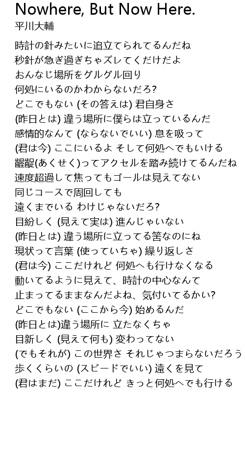 | [03:26.53] | どこでもない (ここから今) 始めるんだ |