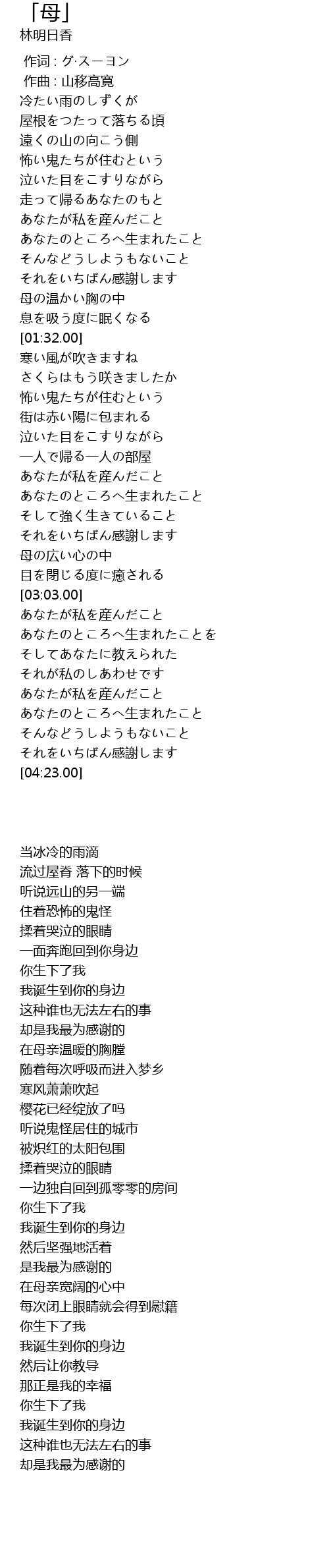| [03:37.00] | あなたが私を産んだこと |