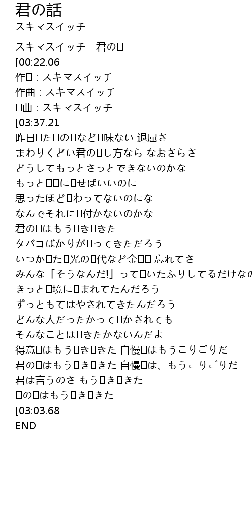| [00:18.60] | スキマスイッチ - 君の� |