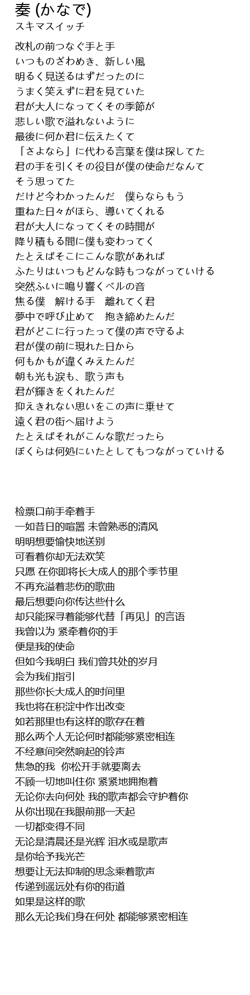 | [00:42.03] | 改札の前つなぐ手と手 |