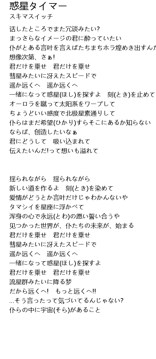 | 一绪になって惑星(ほし)を探すよ 刻(とき)を止めて | |