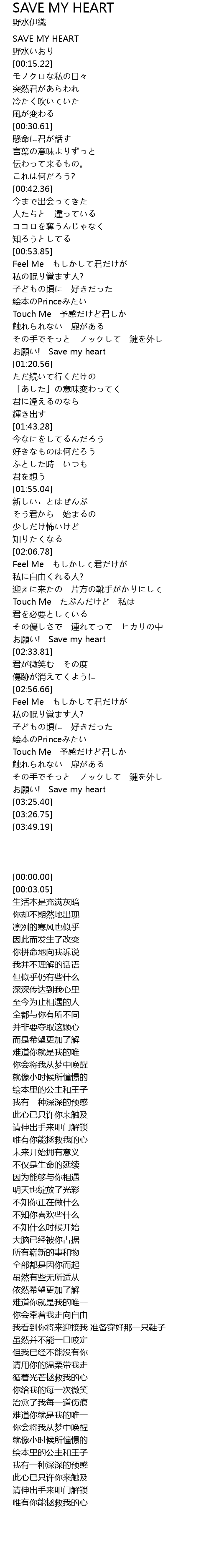 | [03:17.17] | その手でそっと ノックして 鍵を外し |