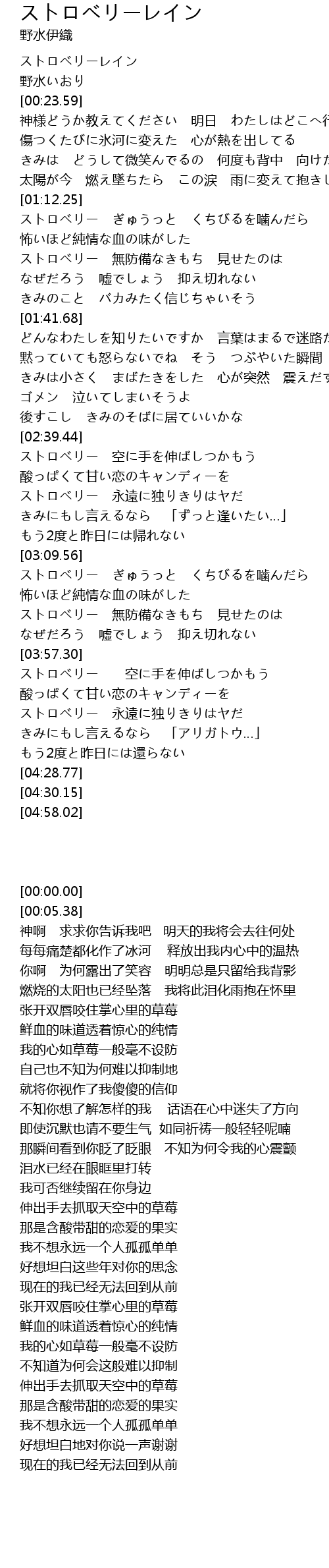 | [04:10.64] | ストロベリー 永遠に独りきりはヤだ |