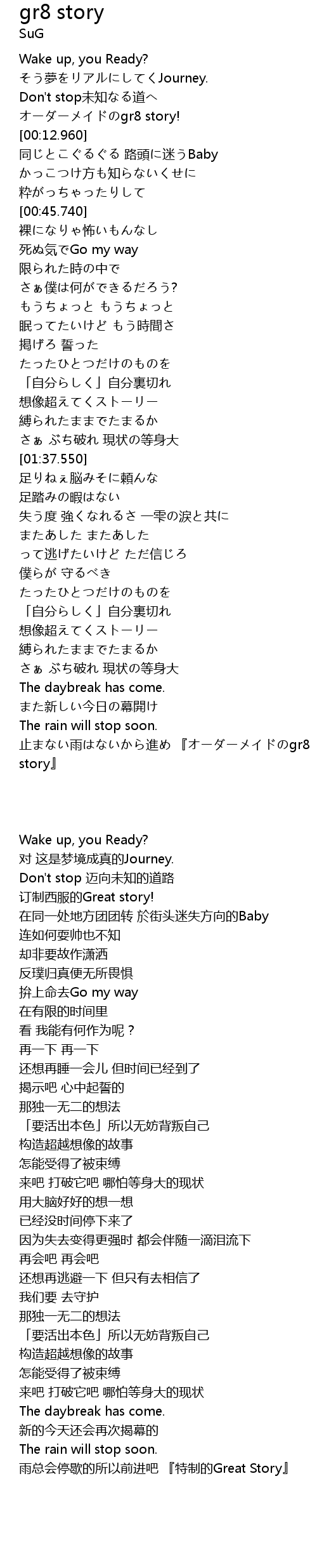 | [03:05.440] | 止まない雨はないから進め 『オーダーメイドのgr8 story』 |