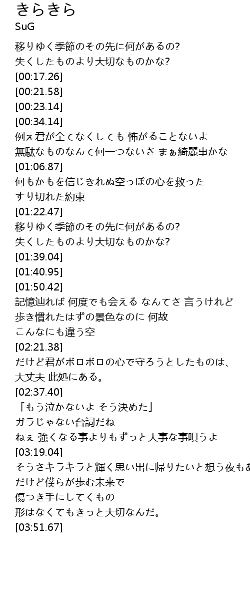 | [00:01.39] | 移りゆく季節のその先に何があるの? |