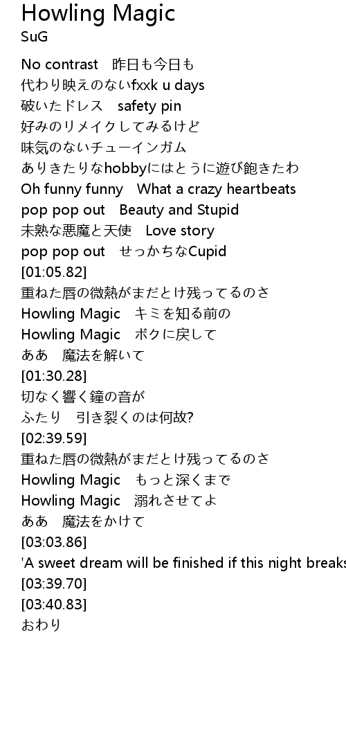 | [01:21.04] | Howling Magic ti |