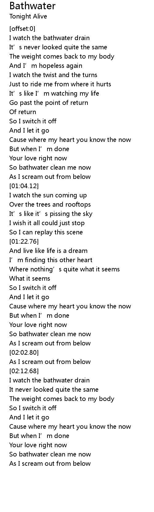 | [00:56.95] | So bathwater clean me now |