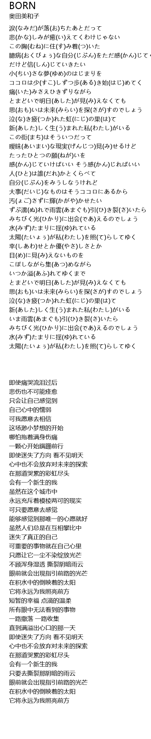 | [03:45.500] | 新(あした)しく生(う)まれた私(わたし)がいる |