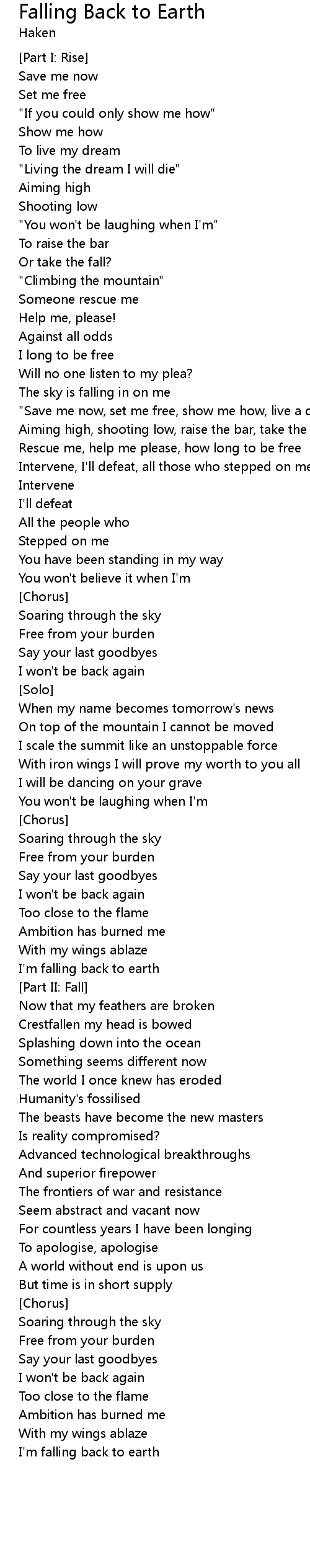 I'm falling back to earth |
