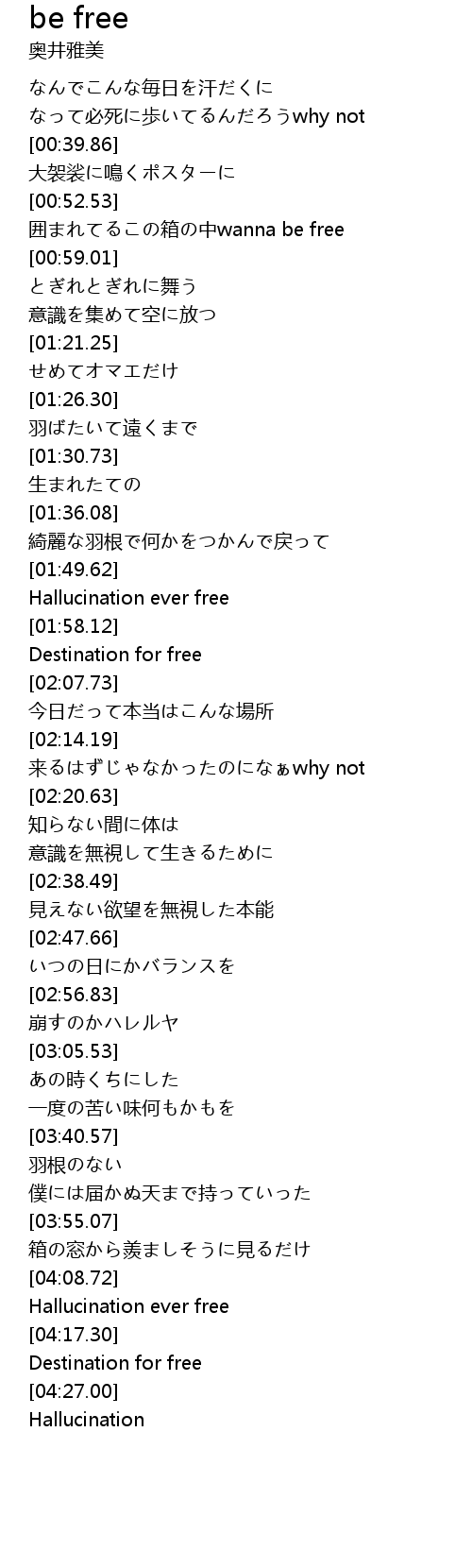 | [00:53.30] | 囲まれてるこの箱の中wanna be free |