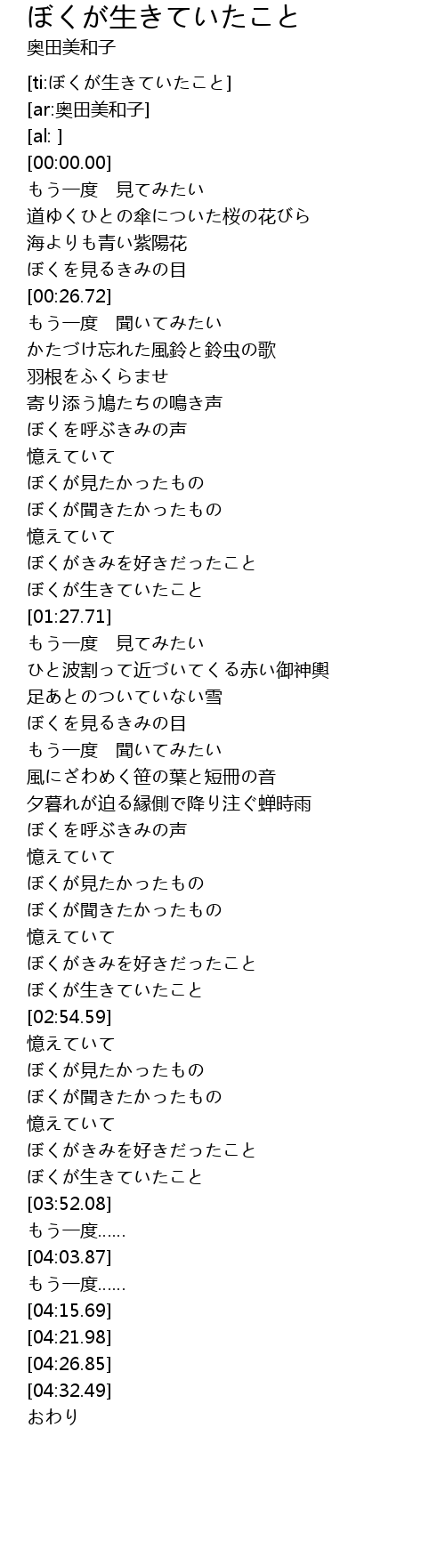 | [03:38.00] | ぼくがきみを好きだったこと |