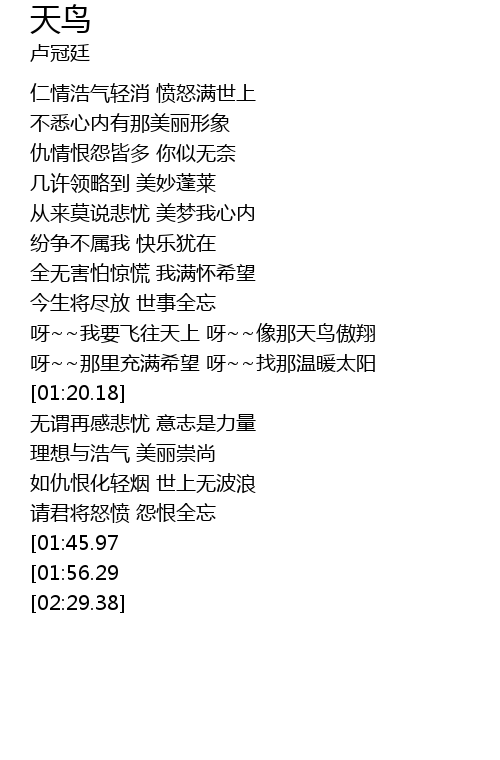 | [02:17.31][01:56.29] | 呀~~那争充满希望 呀~~找那温暖太阳 |