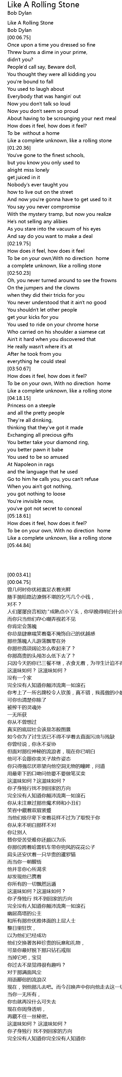 Like a complete unknown, like a rolling stone |