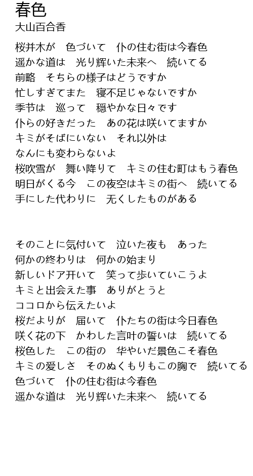 | 桜色した この街の 华やいだ景色こそ春色 | |