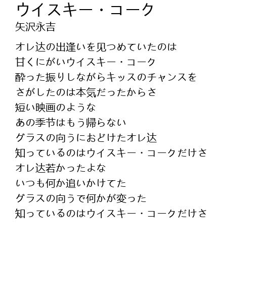 | Song | ウイスキー・コーク |