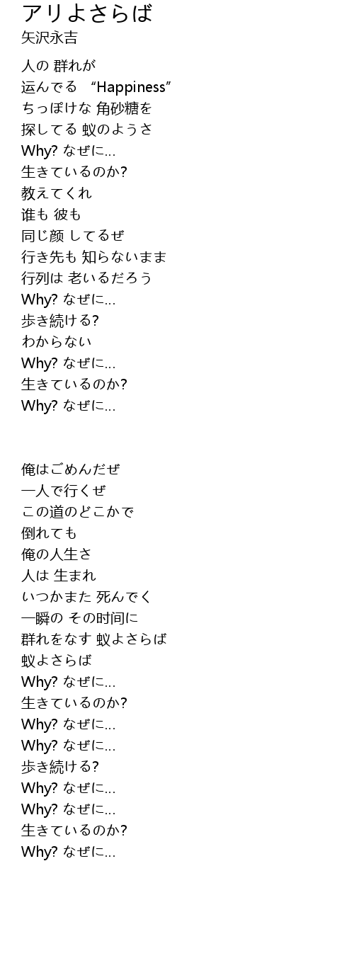 群れをなす 蚁よさらば |