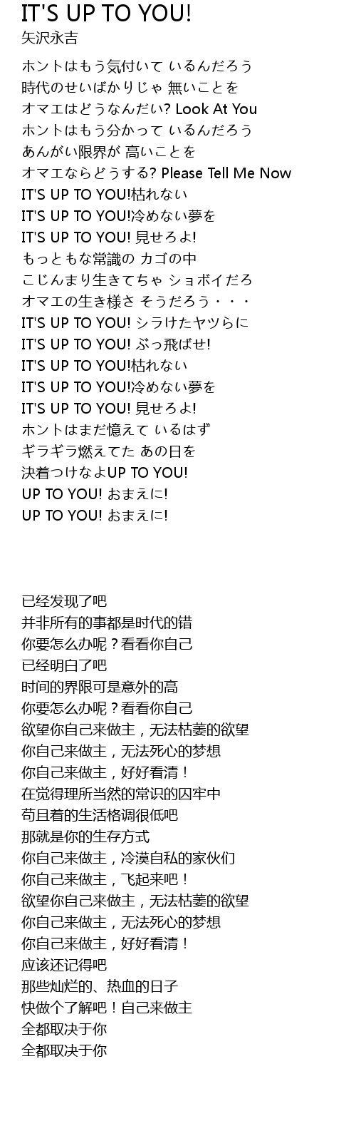 | [02:52.000] | IT' S UP TO YOU! jian! |