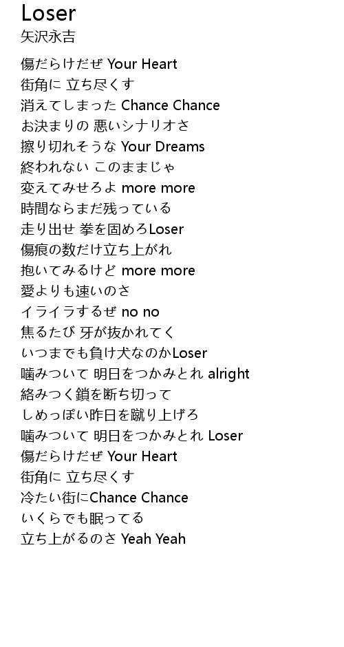 噛みついて 明日をつかみとれ Loser |